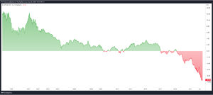 Warto mieć także na uwadze, że słabość złotego to nie tylko czynniki od nas niezależne. Spore znaczenie mają rekordowe, ujemne realnie stopy procentowe (wykres powyżej), a więc stopy procentowe po uwzględnieniu inflacji. Te wynoszą obecnie -9,35%. Oznacza to, że tyle siły nabywczej złoty traci w sytuacji trzymania go na lokacie oprocentowanej zgodnie ze stopą procentową w środowisku ponad 16% inflacji. Podatek Belki już pomijam. W tłumieniu inflacji nie pomaga również brak koordynacji polityki monetarnej i fiskalnej. Efekty podwyżek stóp procentowych są bowiem częściowo niszczone kolejnymi, socjalnymi pomysłami rządu, jak choćby wakacje kredytowe.